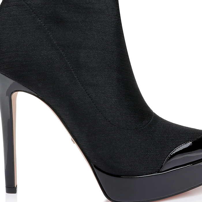 Black Lycra & Patent Leather Stiletto Pointed Toe Boot