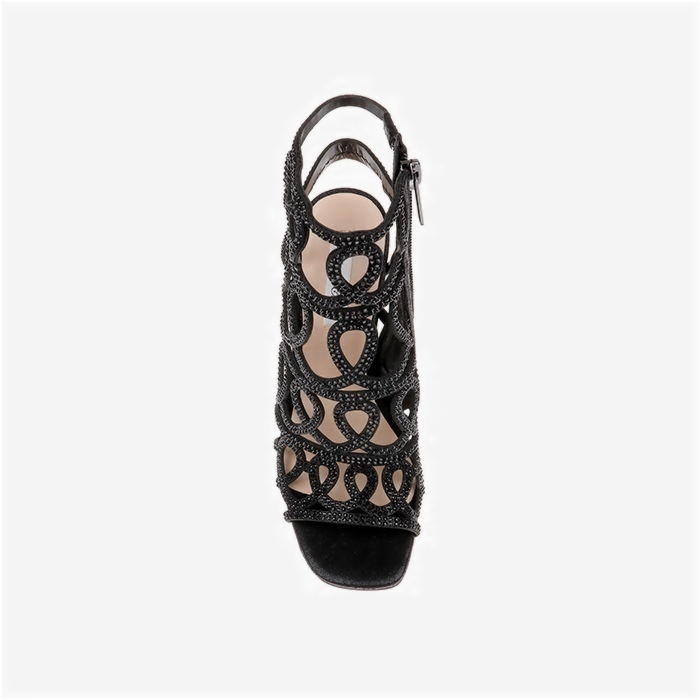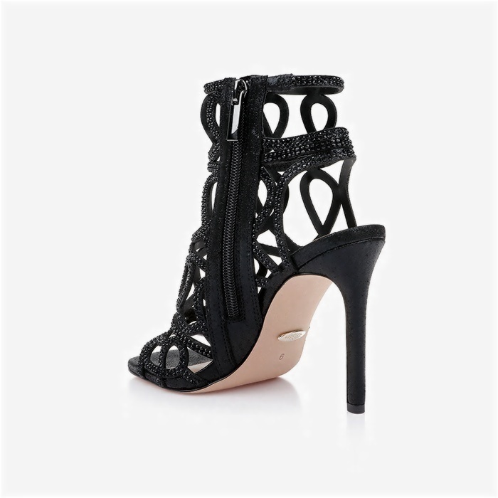 Black Shimmer Sand Fabric & Laser & Hotfix Stiletto Sandal