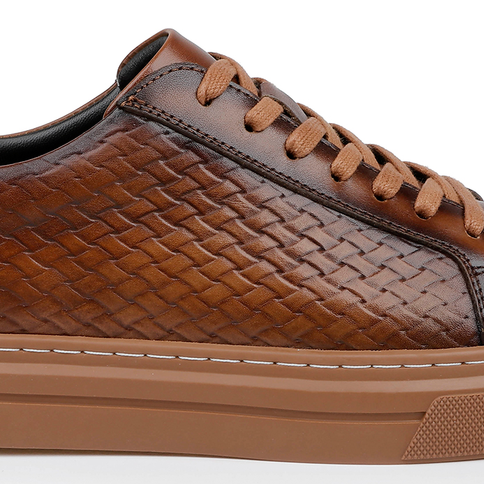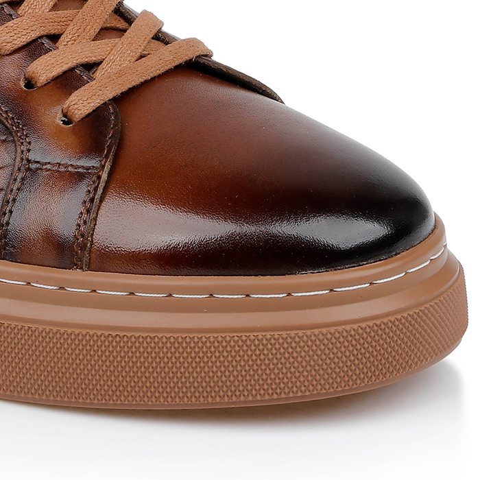 The Clark is a men’s lace-up sneaker featuring embossed burnished cow leather construction. This casual footwear combines premium leather craftsmanship with contemporary sneaker silhouettes for versatile styling options.