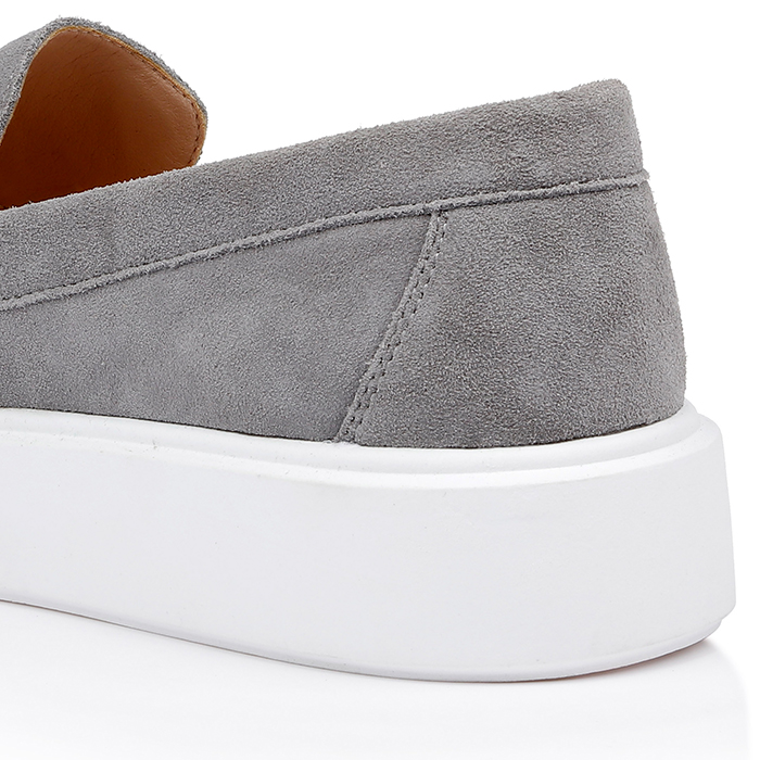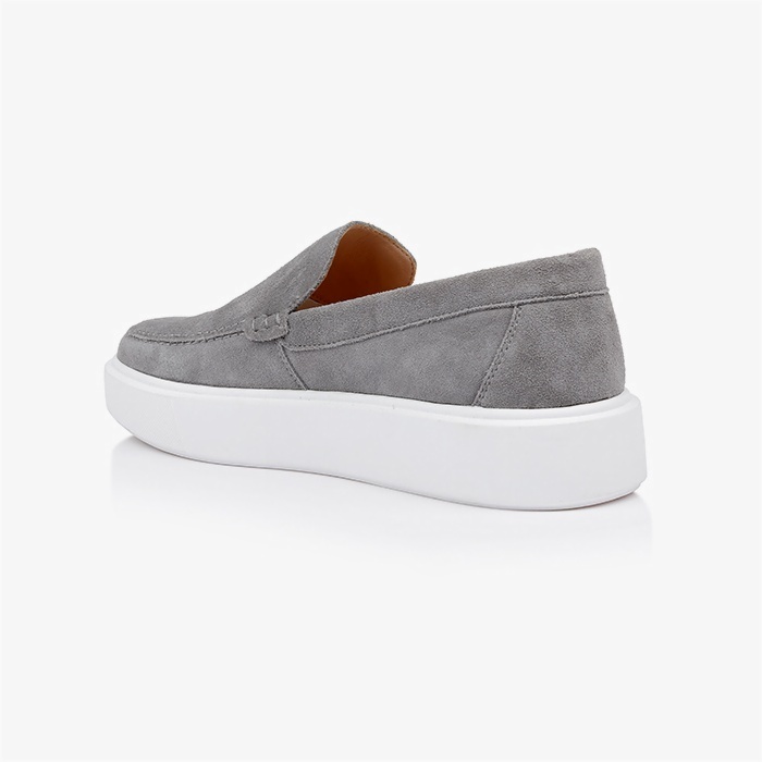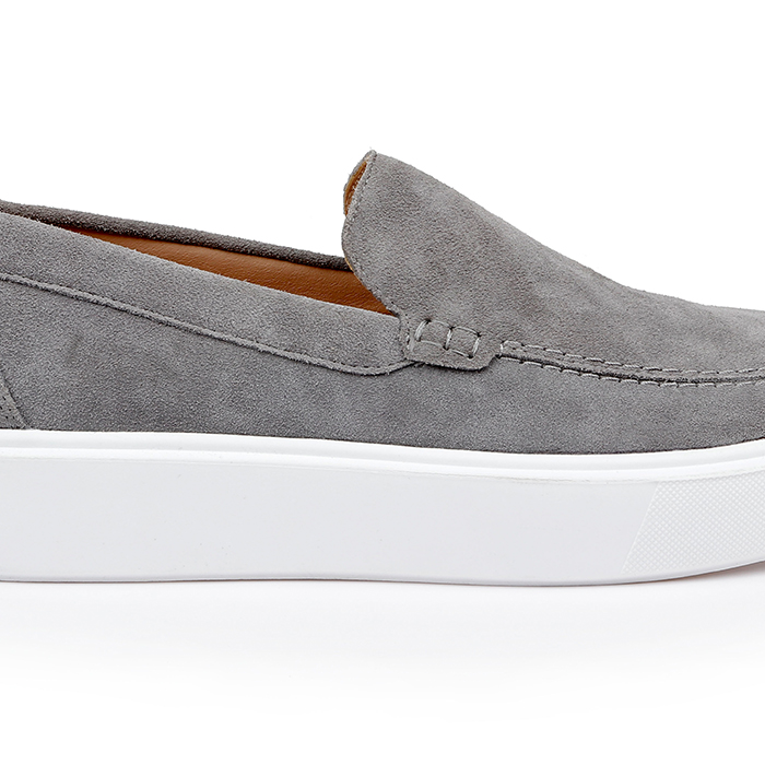 The Giovanni Grey Slip On is a casual sneaker featuring a minimalist design with premium cow suede upper and contrasting white sole. The streamlined silhouette offers versatile styling options for contemporary casual collections.