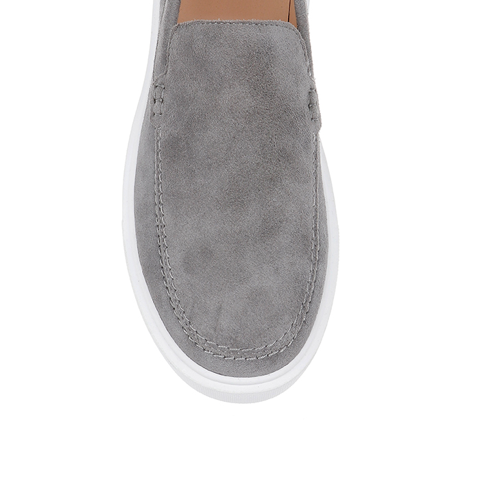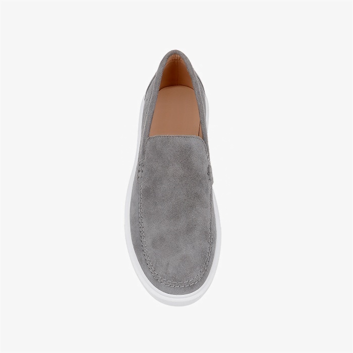 Construction combines genuine cow suede upper with synthetic leather lining for comfort and durability. TPU outsole provides reliable traction and wear resistance. Clean slip-on design eliminates hardware for seamless aesthetic appeal.