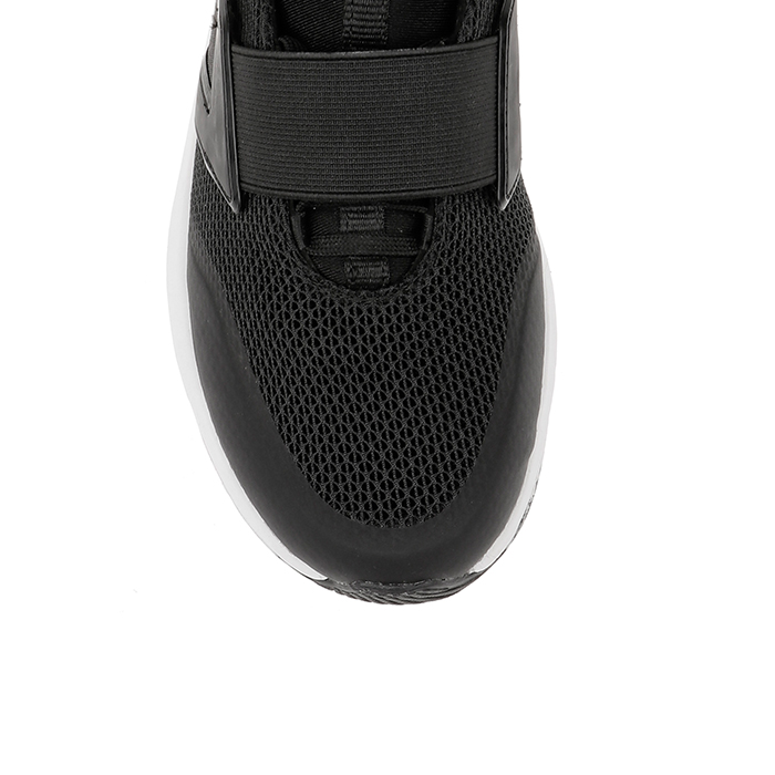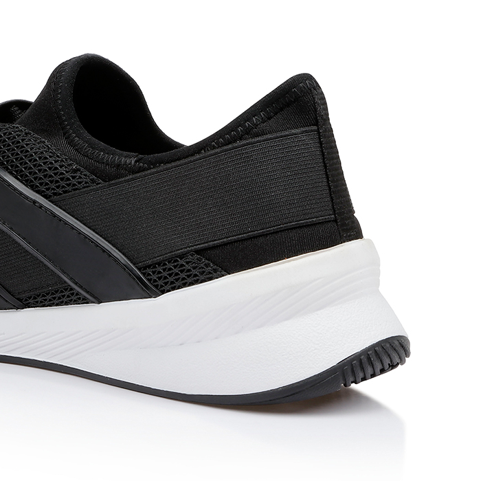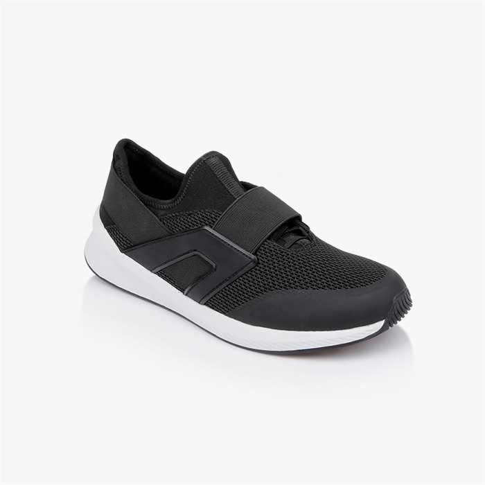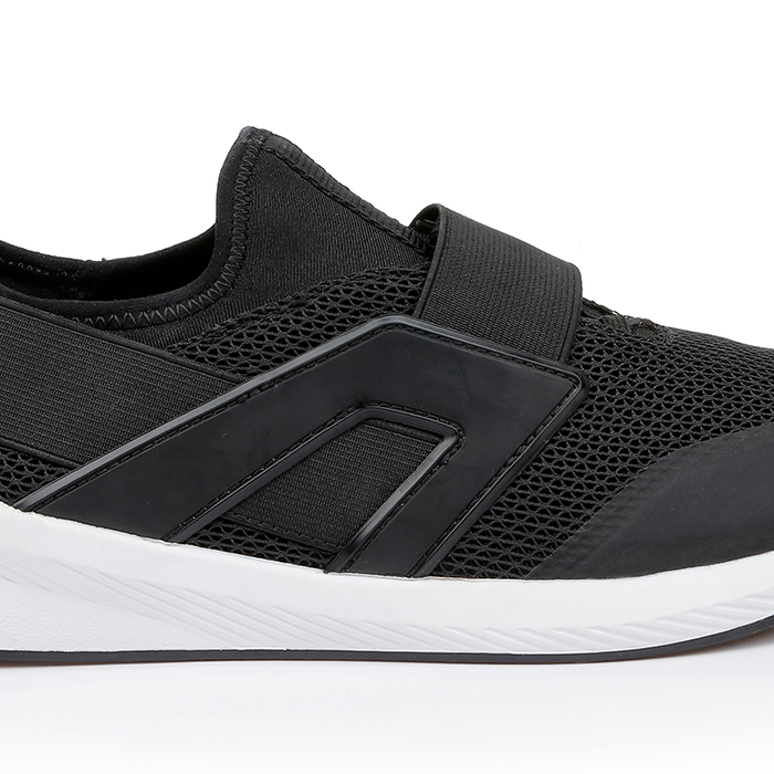 The Sarah Black Jogging sneaker features an all-black mesh upper construction with integrated TPU molded components for enhanced structure and durability. The monochromatic design delivers a sleek athletic aesthetic while maintaining optimal breathability.