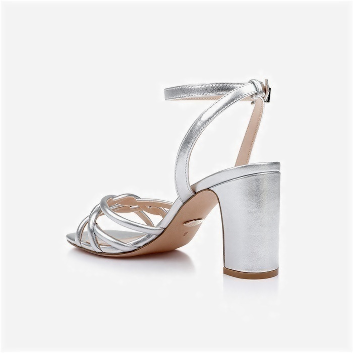 Silver Metallic Kid Leather Block Heel Sandal
